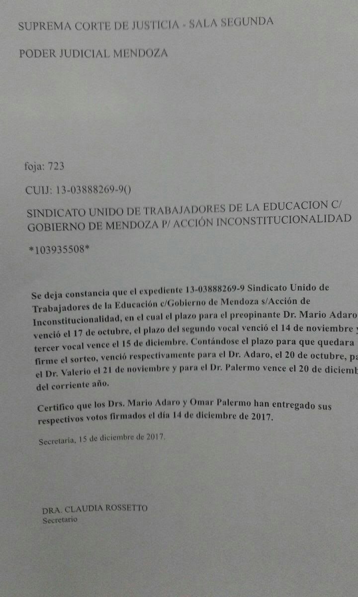 Según registros de la Sala Segunda, el 14 de diciembre, los ministros Mario Adaro y Omar Palermo incorporaron sus votos al expediente. Nada se sabía entonces del voto de Valerio. Esto confirmó que los dos ministros "ensamblaron" o acordaron sus votos.