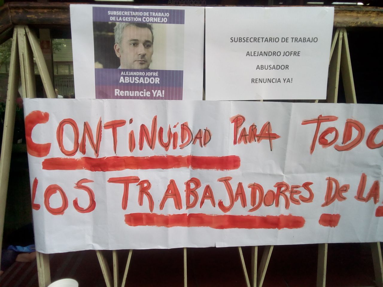 Durante la mañana de hoy, una protesta de ATE y del Partido Obrero llegó hasta las puertas de la Subsecretaría de Trabajo, sumando tensión a la situación que se vive en el edificio. Además, un grupo de mujeres identificadas con el colectivo "Ni una menos" también se presentó en el lugar para pedir la renuncia del funcionario.
