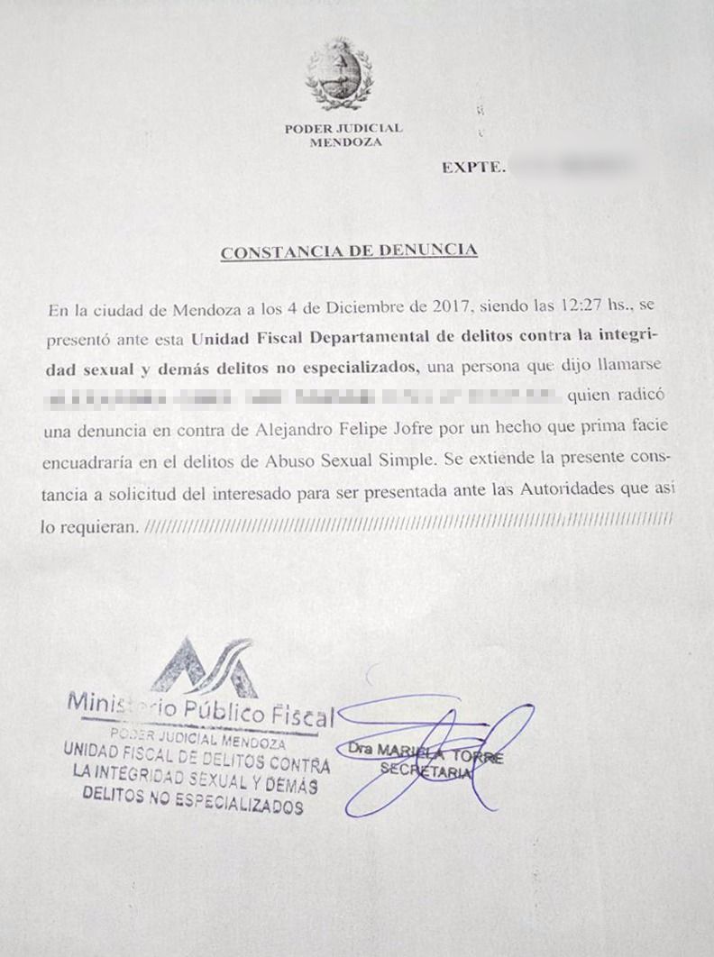 La denuncia inicial. Otras dos mujeres también denunciaron a Jofré.