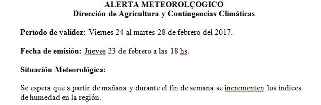 El texto del alerta es claro. "Se espera que a partir de mañana - viernes- y durante el fin de semana se incrementen los índices de humedad en la región. Esta situación, combinada con altas temperaturas y la aproximación de una perturbación meteorológica desde el Pacífico, provocarán la ocurrencia de lluvias y tormentas que serán más importantes en la zona oeste de la provincia, abarcando sectores de precordillera", dice el informe firmado por un meteorólogo oficial. Una fuente del Gobierno explicó que ese alerta llegó a Defensa Civil el jueves.Pero incluso desde antes los municipios ya estaban advertidos y por eso ejecutaron operativos.