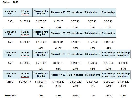 En estas simulaciones, que no incluyen el componente impositivo, hay que prestar particular atención a la categoría R2, que es la que abarca a las familias tipo de clase media, con un consumo de hasta 550 kw por bimestre.
