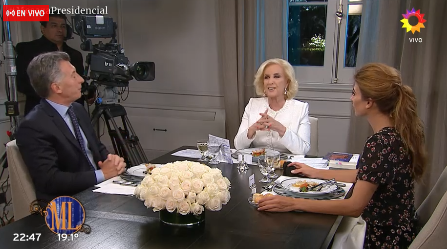 El presidente Mauricio Macri afirmó esta noche que "la pobreza está bajando y su causa es la inflación", durante una entrevista que le realizó la conductora Mirtha Legrand desde la Quinta de Olivos, donde también estuvo presente la primera dama, Juliana Awada.