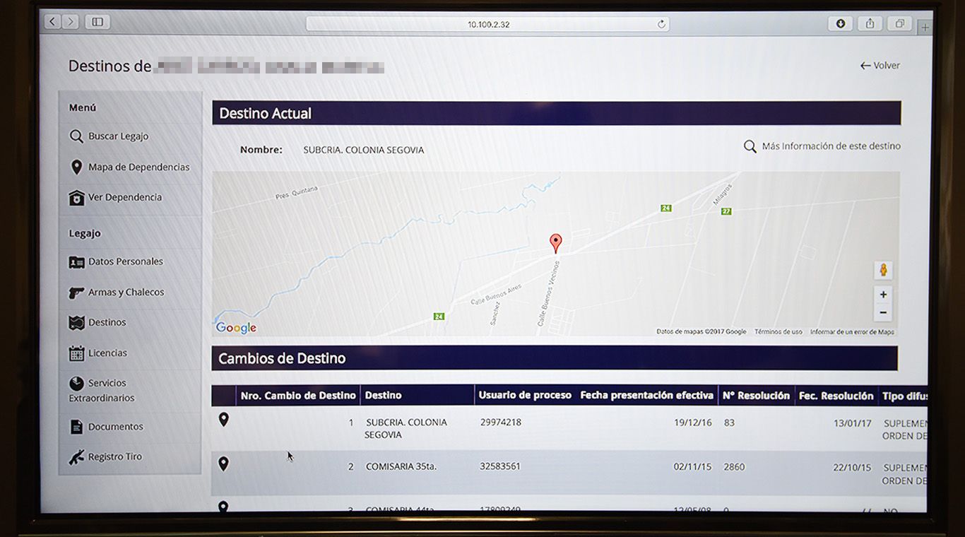 Este dato irá a parar a un "legajo digital", que se implementó en marzo del año pasado y en el que ya aparecen detalles de cada uno de los 950 integrantes de la fuerza. Información personal de cada policía, pasado y presente, están a la mano de quienes administran el control online de los efectivos.