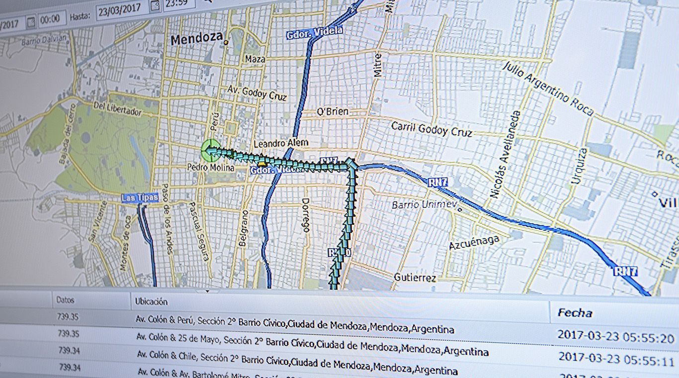 Acorde con el objetivo cornejista de controlar el gasto, Lázaro muestra cómo puede detectar on line el lugar donde se encuentran y los recorridos que realizan la mayoría de los móviles de la Policía.