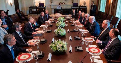Tras el encuentro en el Salón Oval entre los presidentes de Estados Unidos y Argentina, ambas delegaciones almorzaron en otro sector de la Casa Blanca.