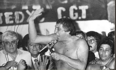 El "luchador popular" Saúl Ubaldini. ¿Qué consiguió en su prédica y en su responsabilidad histórica? El comienzo de las privatizaciones más salvajes del país en en último medio siglo. ¿Quiénes fueron los que más perdieron? Los trabajadores. Un genio, ¿no?