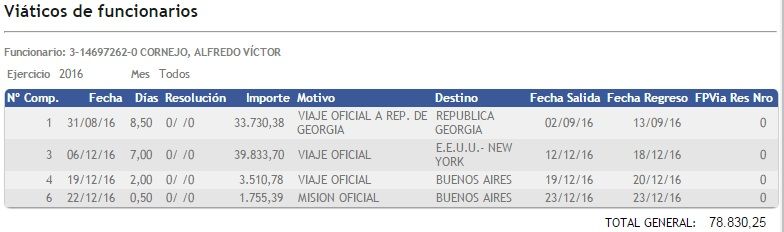 Según la información oficial, en todos los viajes el Gobernador gastó 114.346 pesos en viáticos desde que asumió. Al menos eso es lo que presentó ante la Contaduría General de la Provincia. Más allá del monto, hay un dato importante: luego de 7 años, un gobernador volvió a rendir cuentas de lo que gasta en viáticos cuando viaja. Es que a pesar de que la ley los obliga, los últimos dos gobernadores habían esquivado esa obligación.