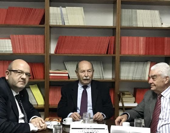 Jorge Sappia (centro) se confiesa ante Diego Barovero e Hipólito Solari Yrigoyen como nuevo miembro de la mesa estratégica de Cambiemos.