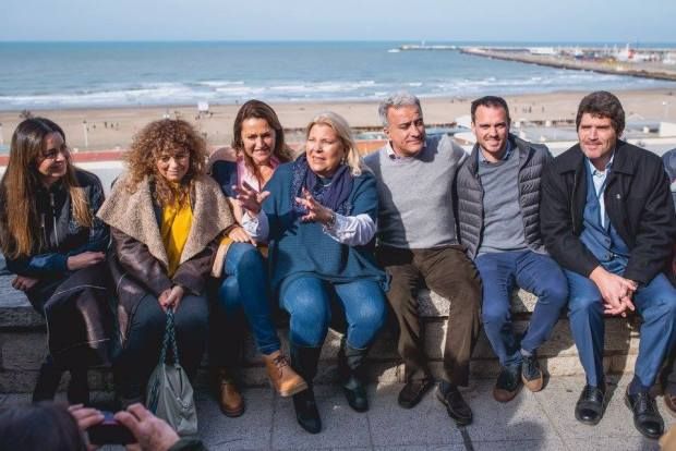 Elisa Carrió el viernes en Mar del Plata, con candidatos bonerenses y Fernando Sánchez, que ya camina por el área presidencial. Allí lo han bautizado como "El inquisidor".