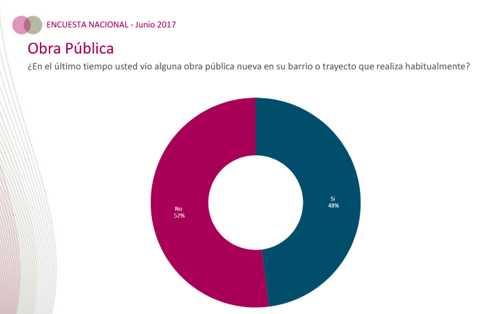 De acuerdo con una encuesta nacional de Isonomía Consultores, el 52% de los consultados declara no haber visto ninguna obra pública nueva en su barrio o en el trayecto que realiza habitualmente.