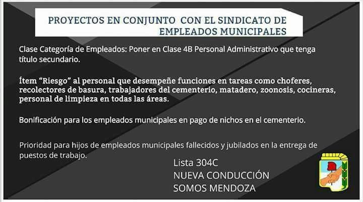 "Prioridad para hijos de empleados municipales fallecidos o jubilados en la entrega de puestos de trabajo", es lo que propone como última medida la plataforma del sindicato y de "Nueva Conducción", la lista del PJ que encabezó Omar Félix en las PASO.
