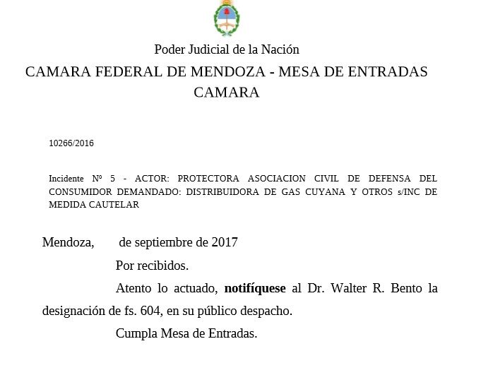 Esto se da en el marco de la causa que inició la Asociación Civil en defensa de los consumidores, Protectora, contra la empresa prestadora del servicio, Ecogas.