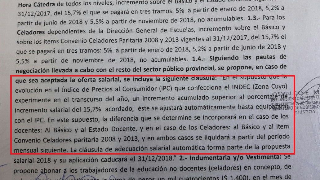Es tiempo de guerra fría para el Gobierno y el SUTE. Mientras el gremio docente dispara una campaña en la que asegura que en la era Cornejo disminuyó la participación de la educación en el presupuesto general, el Poder Ejecutivo busca reforzar su bala de plata: una cláusula gatillo que impediría que los sueldos pierdan con la inflación en el trascurso de 2018.