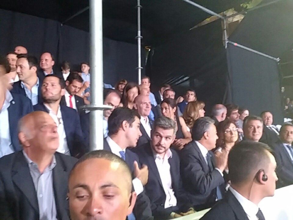 Marcos Peña, el enviado de Mauricio Macri para la Fiesta de la Vendimia disfrutaba esta noche de la Vía Blanca en el palco oficial de calle San Martín.