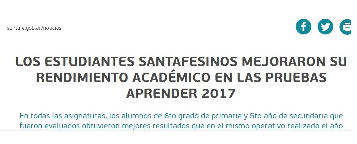 La prudencia de Mendoza no se reprodujo en otras provincias. El gobierno de Santa Fe, por ejemplo, festejó y difundió oficialmente ayer, antes del encuentro de ministros en el Consejo Federal, los datos del Aprender 2017.