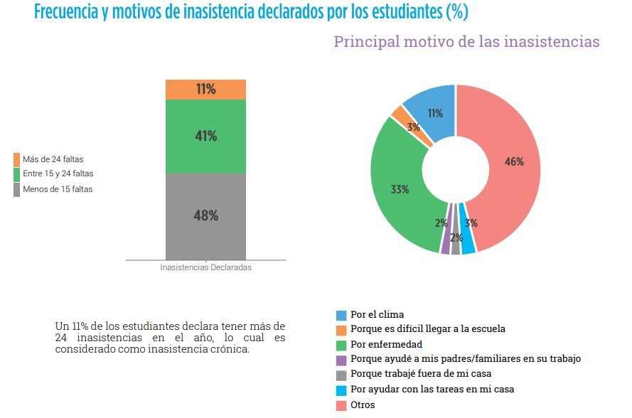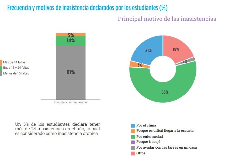 Sin embargo, en una categoría intermedia, la estadística de la provincia no es tan buena. A nivel nacional, el 37 por ciento de los chicos falta entre 15 y 24 días a la escuela. Aquí, el 41 por ciento tiene ese nivel de inasistencias.