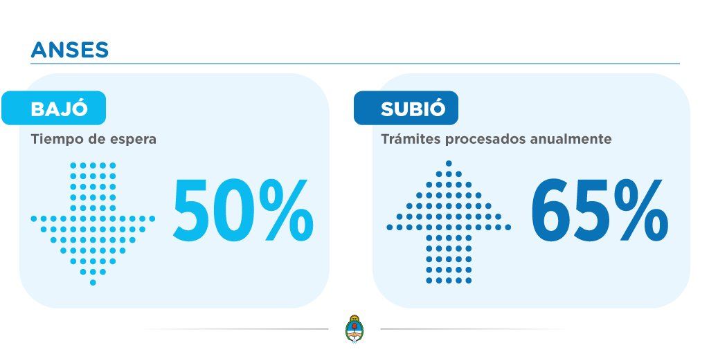 Entre 2015 y 2017, la ANSES redujo el tiempo de espera de 34 a 16 minutos y pasó de 15 a 25 millones de trámites procesados al año. Fuente: Ministerio de Modernización.