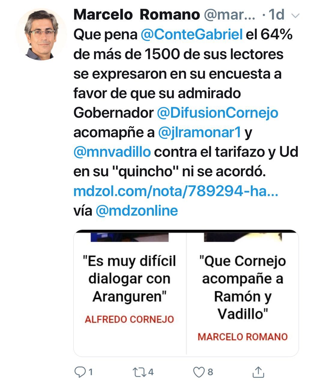 (Clic aquí para leer el Quincho MDZ al que aludió el señor senador electo Marcelo Romano),
