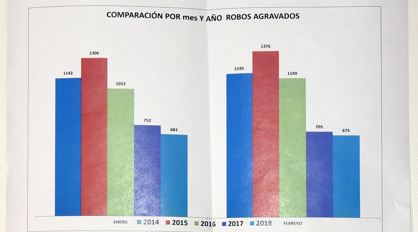 Según la información proporcionada por la Coordinación del Ministerio Público, en los primeros dos meses de 2018, continuaron bajando los robos agravados. Esa tendencia comenzó, de acuerdo con un gráfico de la Justicia, en 2016.