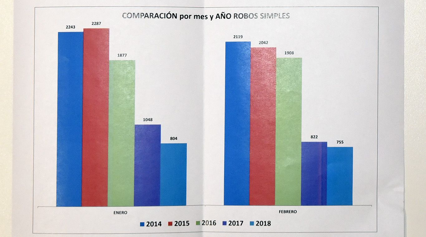 La disminución de los robos simples también alegra al Procurador. En su área indican que bajaron de 20.922 en 2016 a 11.094 en 2017. O sea, 47 por ciento menos.