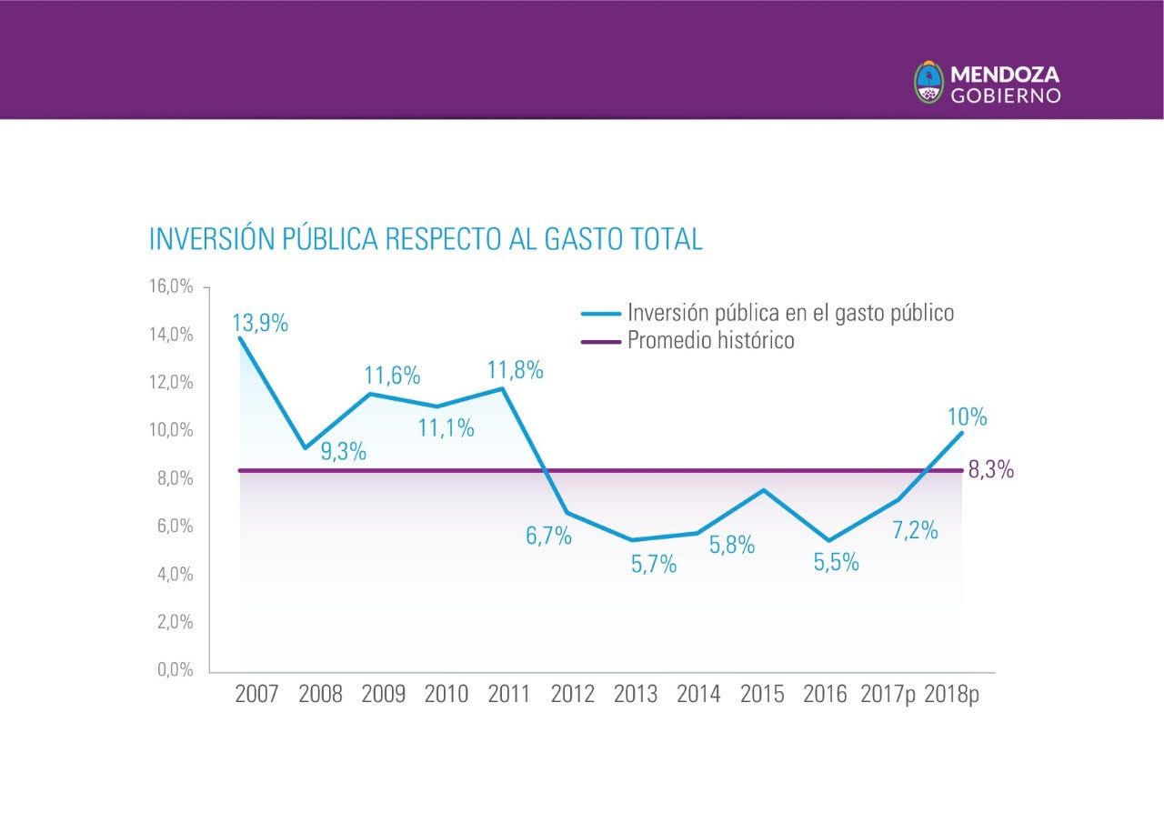 En todos los presupuestos ha conseguido permiso Cornejo para tomar nueva deuda. Este año, la autorización es por 1.918 millones de pesos. Buena parte de ese dinero estará destinado al plan de obras e inversiones, que fue "vendido" por el Gobierno en la discusión del Presupuesto 2018 como un gran avance: asciende a 8.200 millones de pesos y representa el 10 por ciento del gasto total.