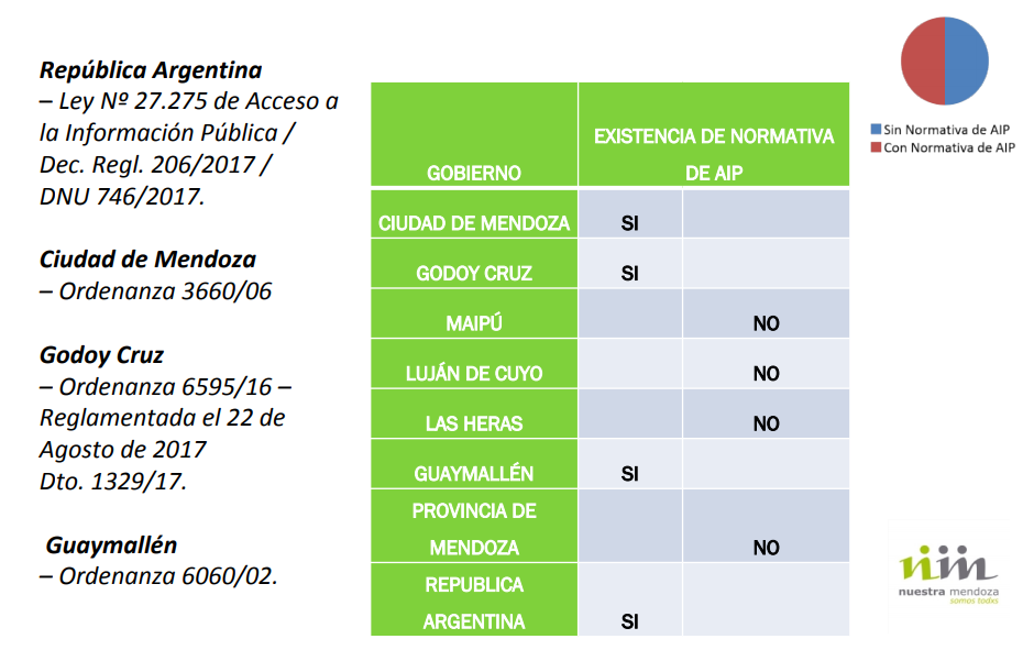 La sola existencia del Acceso a la Información Pública como normativa no garantiza el efectivo ejercicio de este derecho expresa un duro informe realizado por la Fundación Nuestra Mendoza, en la que señala que el acceso a la información pública no está garantizado en la mayoría de los gobiernos del Gran Mendoza, como tampoco en el Gobierno provincial, "especialmente si se hace referencia a la dimensión pasiva de este Derecho".