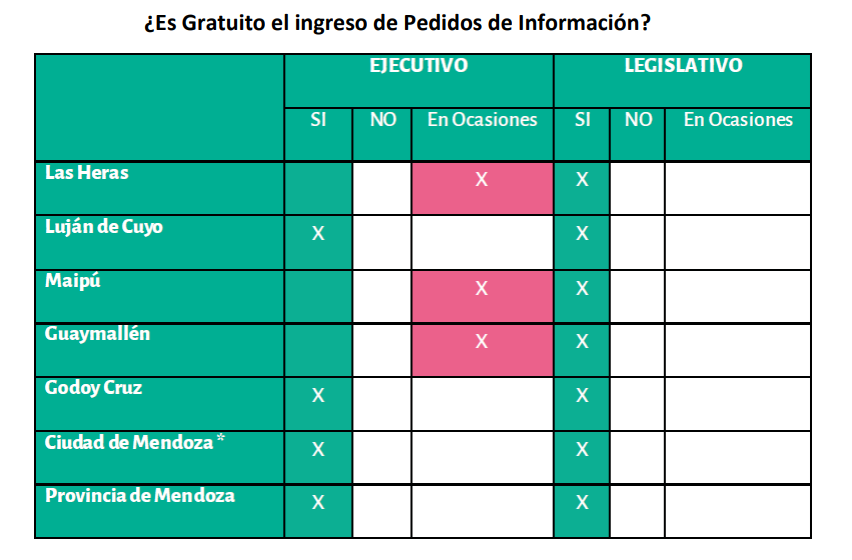 Otros datos Maipú, Luján, Las Heras y la provincia no tiene una normativa sobre acceso a la información pública Así es el procedimiento para solicitar información pública Municipios en que sí y en que no se explicitan Información mínima que se debe comunicar activamente un gobierno Lugares donde es gratuito el ingreso de pedidos de información. Nivel de transparencia activa en estas jurdiscciones Relación solicitud realizada vs respuestas recibidas