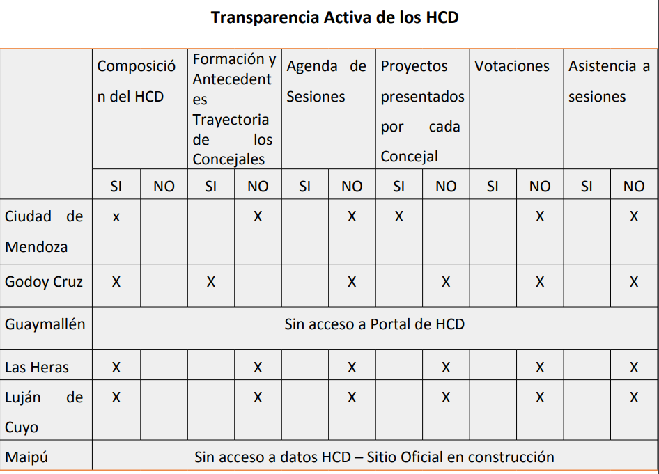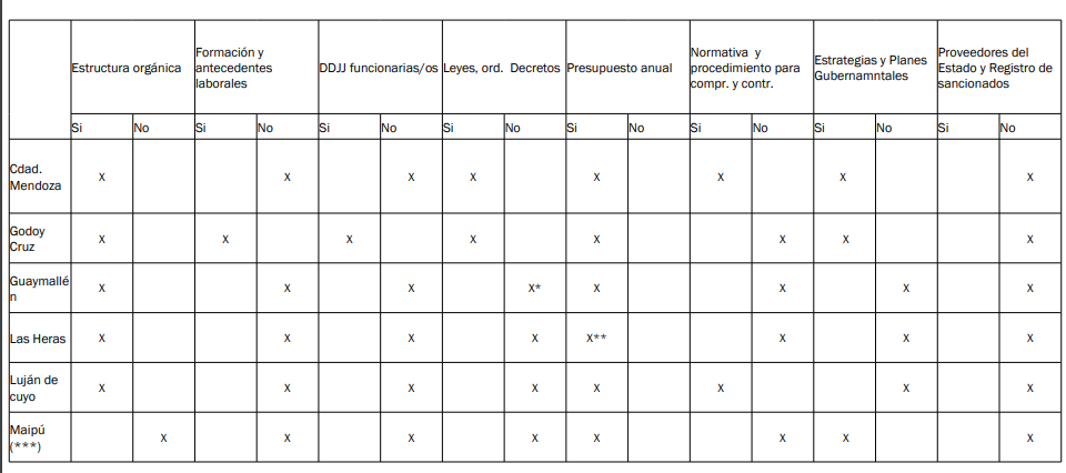 Como avances señala la incorporación de una plantilla en la web de Godoy Cruz para solicitar información simplificando el proceso, un módulo de Transparencia en la web renovada del municipio de Maipú, y una plataforma de País Digital que permite mayor transparencia en los concejos de Luján de Cuyo y Guaymallén.