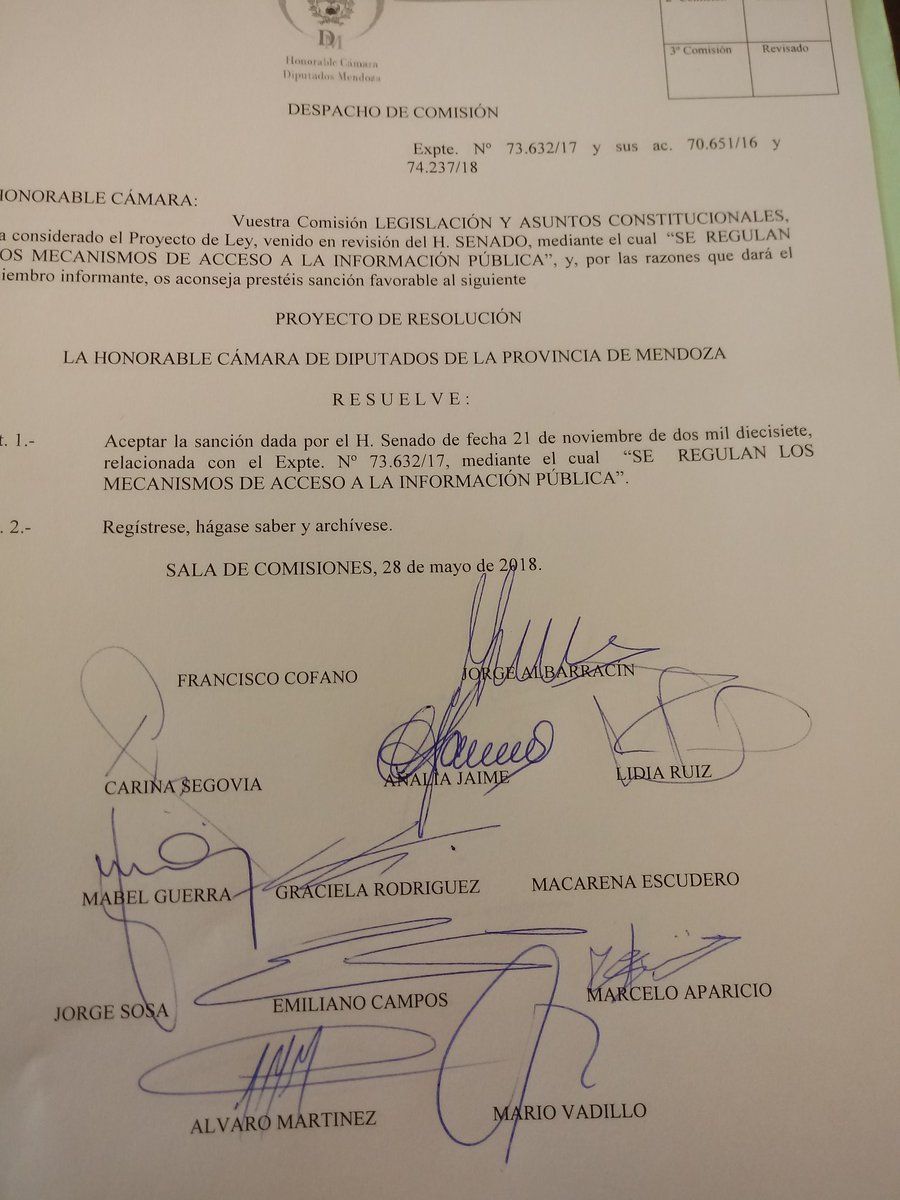 Jorge Albarracín, el radical que encabeza la LAC, dio pistas de lo que se viene: "La idea es aprobarlo tal cual vino del Senado. Los principales aspectos son que el ciudadano de Mendoza podrá acceder a casi toda la información pública, ya sea por vía escrita o electrónica en forma gratuita y de esta manera aquellos que estén interesados en algún tema podrán hacerlo. A su vez, se va a controlar a los funcionarios que den información, porque va a existir un funcionario sustituto responsable que será el encargado de la información, siendo solidariamente responsable con el jefe del área para dar información".
