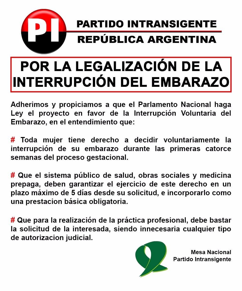 Lo hizo por medio de un breve comunicado de la "Mesa Nacional" del PI. "Adherimos y propiciamos a que el Parlamento Nacional haga ley el proyecto en favor de la interrupción voluntaria del embarazo", empieza el texto que compromete a Ramón.