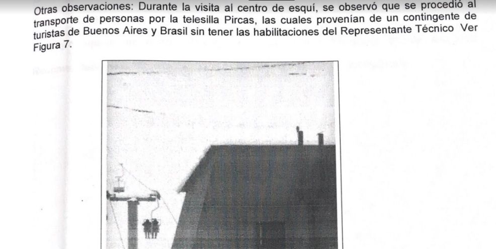 Casi sobre el final, los responsables del informe hacen hincapié en un episodio del que fueron testigos a comienzos de junio. "Se procedió al transporte de personas en la telesilla Pircas, con un contingente de turistas de Buenos Aires y Brasil, sin tener las habilitaciones del representante técnico", señalan.