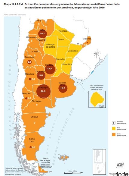 El censo tiene datos diversos y gran parte de la diferencia en la "riqueza" que genera la minería en zonas con llanuras frente a áreas montañosas está en realidad en el desarrollo de la industria de la construcción y lo que tracciona en minerales de segunda y tercera categoría.