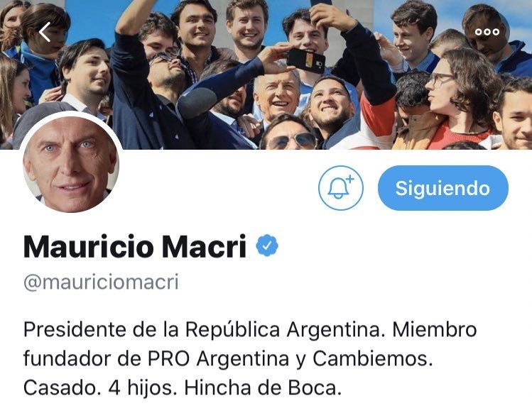 Es que apenas dejó su cargo, el expresidente cambió su bio, un pequeño resumen que cuenta quiénes somos en esa red social. Antes rezaba "Presidente de la República Argentina", algo que, al no suceder más, desapareció del breve texto.