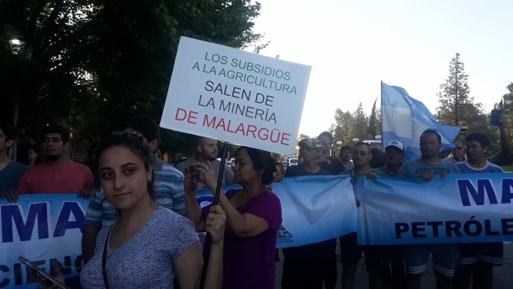 Luego la manifestación se dirigió a la plaza San Martín, en la vereda de la Municipalidad de Malargüe, donde se escucharon las palabras de Juan Carlos Montenegro, del Movimiento Minero; de Gustavo Miras, presidente de la Cámara de Comercio y por último, del intendente Juan Manuel Ojeda.
