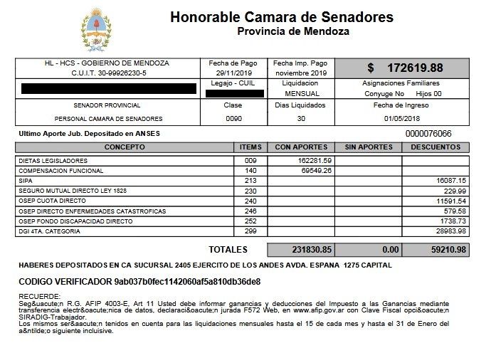 La dieta, es decir los salarios, de los legisladores de Mendoza están atados a las paritarias de los estatales y por eso tienen la misma ventaja respecto a otros gremios: este año tienen su salario atado a la inflación gracias a la cláusula gatillo. Es decir, que los aumentos que tienen son equivalentes a la suba de precios, que ya va por encima del 50%.