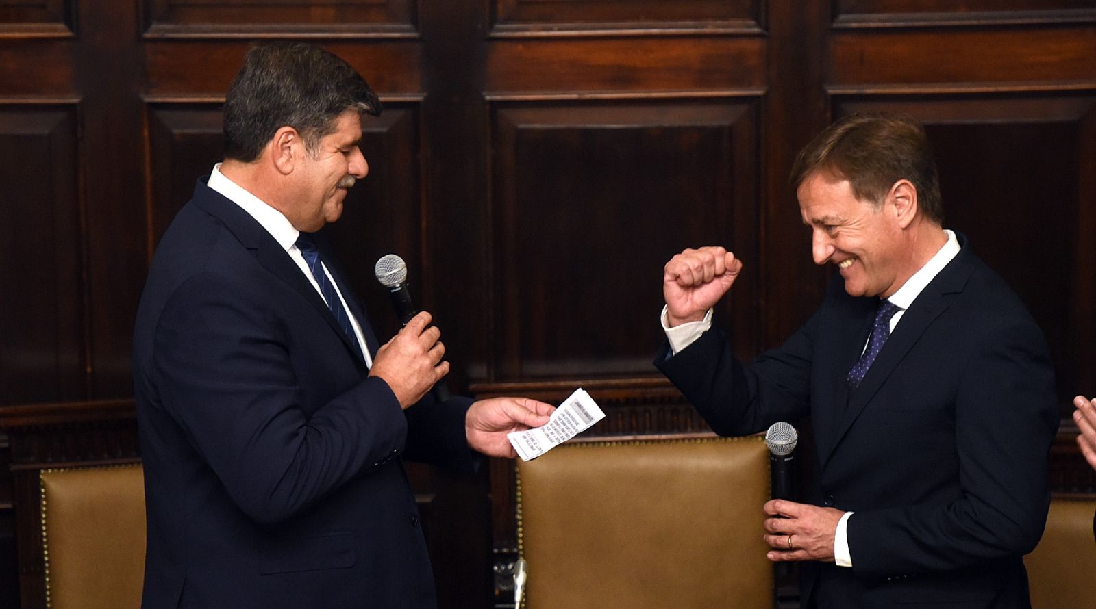 Rodolfo Suarez es el nuevo gobernador de Mendoza a partir de este lunes. En la Legislatura, la vicegobernador saliente, Laura Montero, le tomó juramento y más tarde, el mandatario saliente, Alfredo Cornejo, le hizo el traspaso de mando.