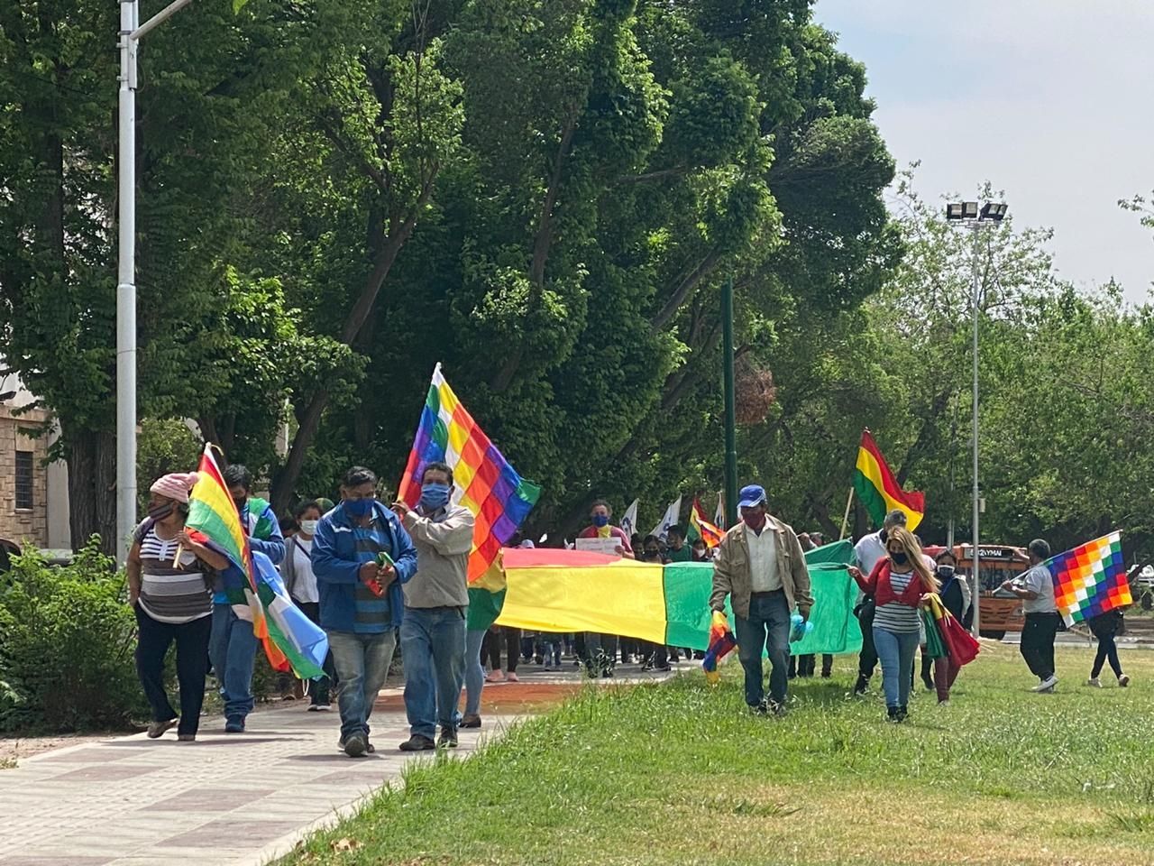 Con pancartas que pedían la habilitación de escuelas o inmuebles para poder sufragar y banderas de Bolivia, marcharon hasta el edificio gubernamental e hicieron escuchar su reclamo. "El consulado no representa a los bolivianos", afirman.
