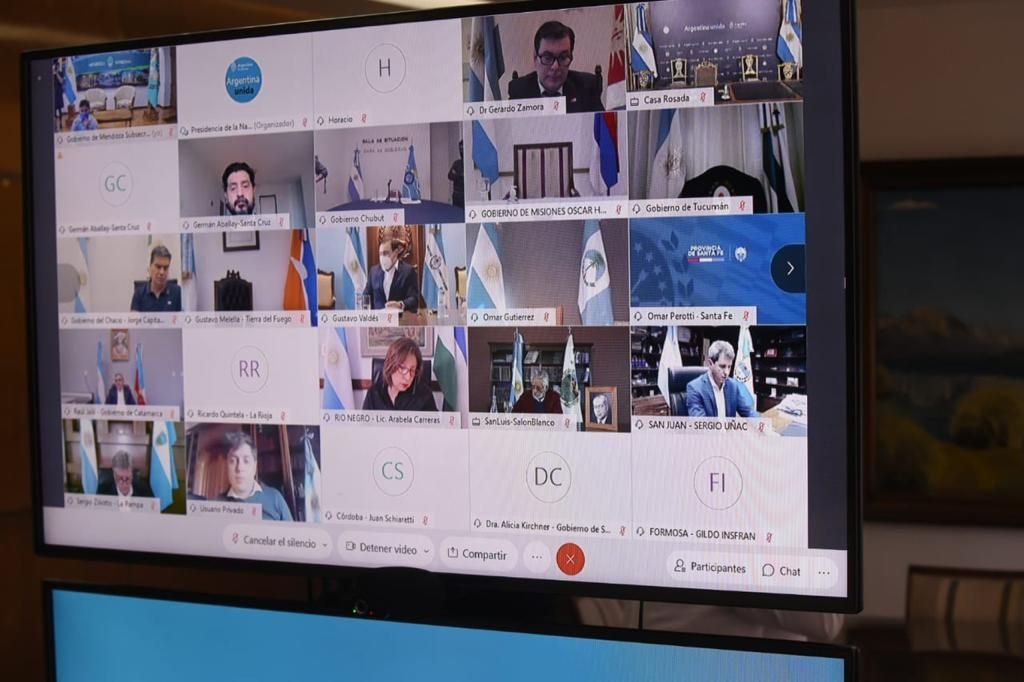Para esto, el mandatario mantiene esta tarde, desde Casa Rosada, una reunión por videoconferencia con todos los gobernadores del país y el jefe de Gobierno de la ciudad de Buenos Aires para evaluar la situación sanitaria y las medidas a tomar en el marco de la pandemia de covid-19.