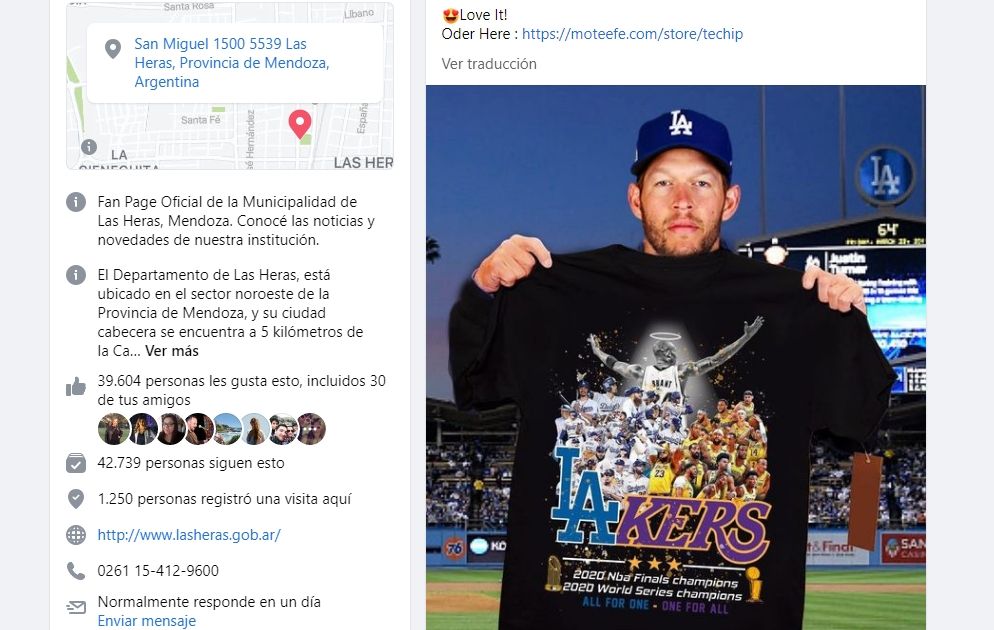 Le hackearon el Facebook a la Municipalidad de Las Heras y venden camisetas