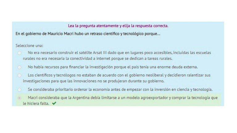 En un examen del ciclo básico de la UBA se pidió identificar el motivo que explica el "retraso científico y tecnológico" durante el macrismo. “En el gobierno de Mauricio Macri hubo un retraso científico y tecnológico porque…” era la pregunta a la cual le daban opciones.