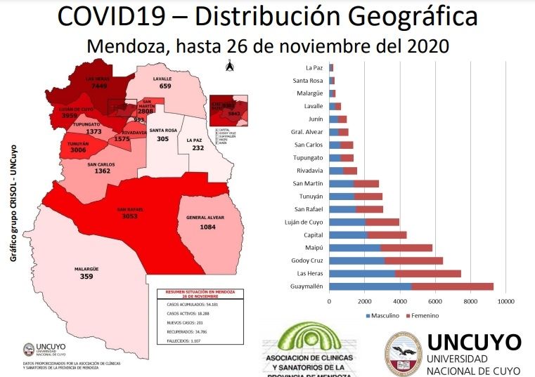 Los datos sobre el impacto de la pandemia en Mendoza muestran cómo ha descendido la curva de contagios y que la mayor cantidad de casos se dan en el área más poblada. Pero en cuanto a la incidencia del covid hay un dato que sorprende: el Valle de Uco es la región de la provincia donde hubo más incidencia, incluso más que en el Gran Mendoza.