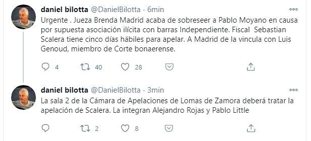 La jueza Brenda Madrid dictó el sobreseimiento de Pablo Moyano en la causa por supuesta asociación ilícita con barras de Independiente de Avellaneda. En concreto se lo investiga por la supuesta impresión oculta de entradas, mediante un listado de socios paralelo y la contratación de una empresa proveedora de servicios informáticos.