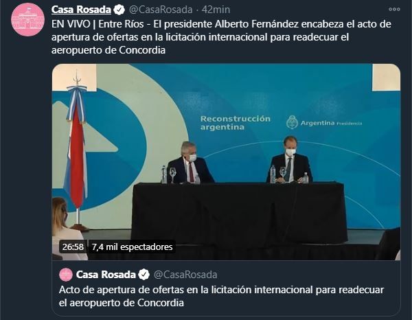 Por otra parte, y ya enfocado en el acto del cual fue parte en Concordia, Fernández sostuvo que el Gobierno nacional "está haciendo federalismo" y "no está declamando".