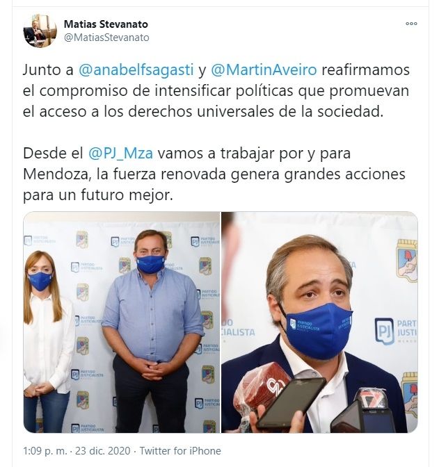 "Vamos a pensar la Mendoza que soñamos pero sobre todo trabajarla. Sentimos que la ciudadanía está cansada de las excusas de los dirigentes y los funcionarios. Estamos convencidos de que la política tiene una gran deuda con la provincia con situaciones que hace muchos años deben resolverse y tienen que ver con la calidad de vida de los mendocinos. Nuestro sueño es que esa deuda la pueda saldar el PJ", manifestó Fernández Sagasti acompañada por el intendente de Maipú, Matías Stevanato y el intendente de Tunuyán, Martín Aveiro.