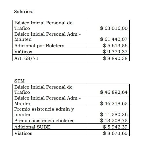 Para el Gobierno el aumento que se aplicará es "lógico" dentro del esquema de costos. Uno de los ítems más importantes de los costos es el salarial. El cálculo se hizo con un salario básico inicial del Personal de Tráfico de $63.016, más adicionales (Adicional por Boletera $5.613,56 Viáticos $9.779,37 Art. 68/71 $8.890,38).