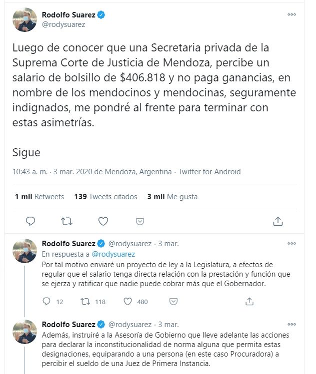 Estaba arrancando el año y una decisión del por entonces presidente de la Suprema Corte, Jorge Nanclares, desató una revuelta de jueces civiles. La Corte dispuso trasladar personal de los juzgados civiles a los juzgados de familia y la medida no fue bien recibida por los magistrados. Se pusieron en pie de guerra y enfrentaron abiertamente en los medios al máximo tribunal, aduciendo que si lo que querían era reforzar los juzgados de familia que lo hicieran enviando allí a los equiparados a magistrados que trabajan en la Corte. Incluso, en la vorágine se filtraron salarios que perciben funcionarios de la Corte que sin ser jueces cobran como si lo fuesen. Esto llevó a que el gobernador Rodolfo Suarez, al enterarse que la secretaria Administrativa de la Corte ganaba 400 mil pesos por mes y no pagaba ganancias, a enviar un proyecto a la Legislatura para terminar con la figura de "equiparados a magistrados".