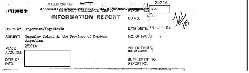 "Information report, Central Intelligence Agency". Objetivo: investigar a posibles células comunistas en Mendoza. El contexto es, en realidad, lo importante: pleno macartismo, guerra fría y expansión del espionaje internacional. Sí, en Mendoza también. Durante la década del 50 el espionaje internacional también llegó a la provincia de la mano de la CIA. Y la comunidad yugoslava fue parte de esa intromisión.