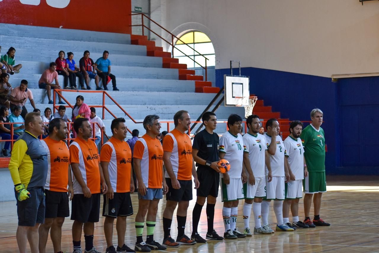 El partido tuvo lugar en el Juan Domingo Ribosqui y, en el equipo rival al de Evo, jugaron Matías Stevanato, intendente de Maipú, y Marcelo Romano, senador provincial, entre otros.