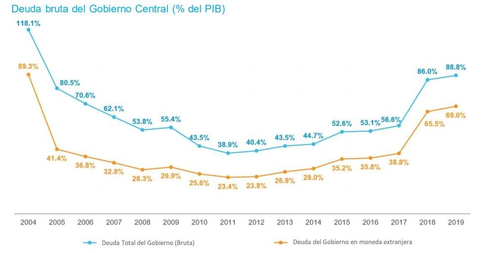 La deuda respecto al PBI está alcanzando niveles históricamente altos, con un alarmante crecimiento en Moneda extranjera, por lo tanto la consideran insostenible.