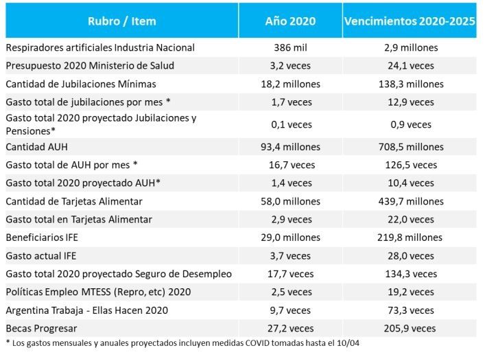 - 3,2 veces el presupuesto asignado actualmente al Ministerio de Salud para todo el 2020.